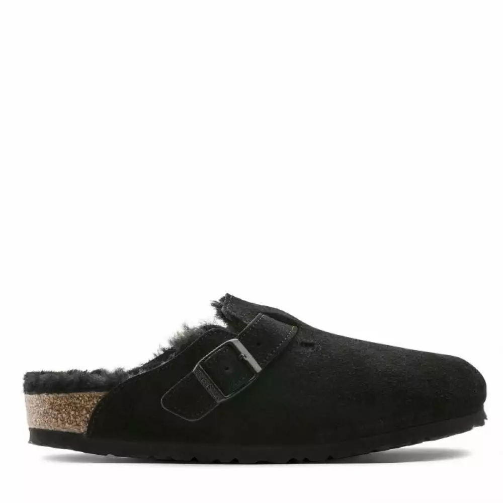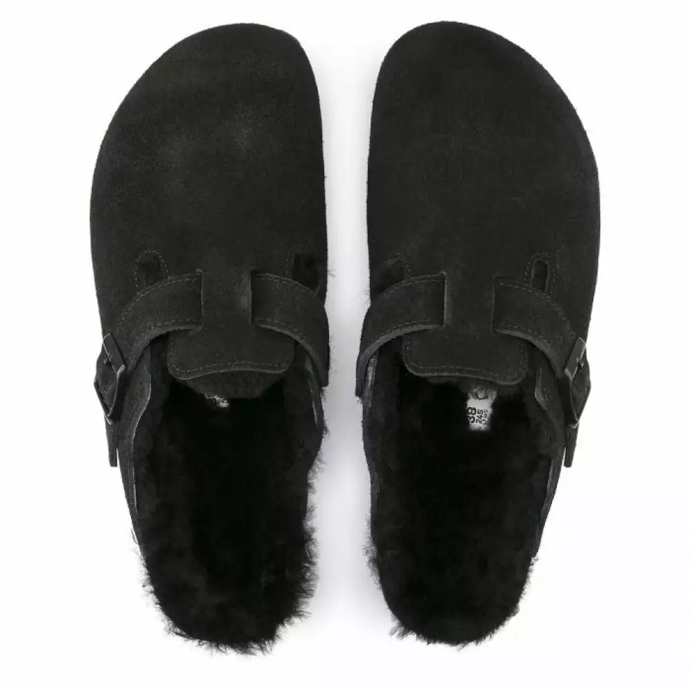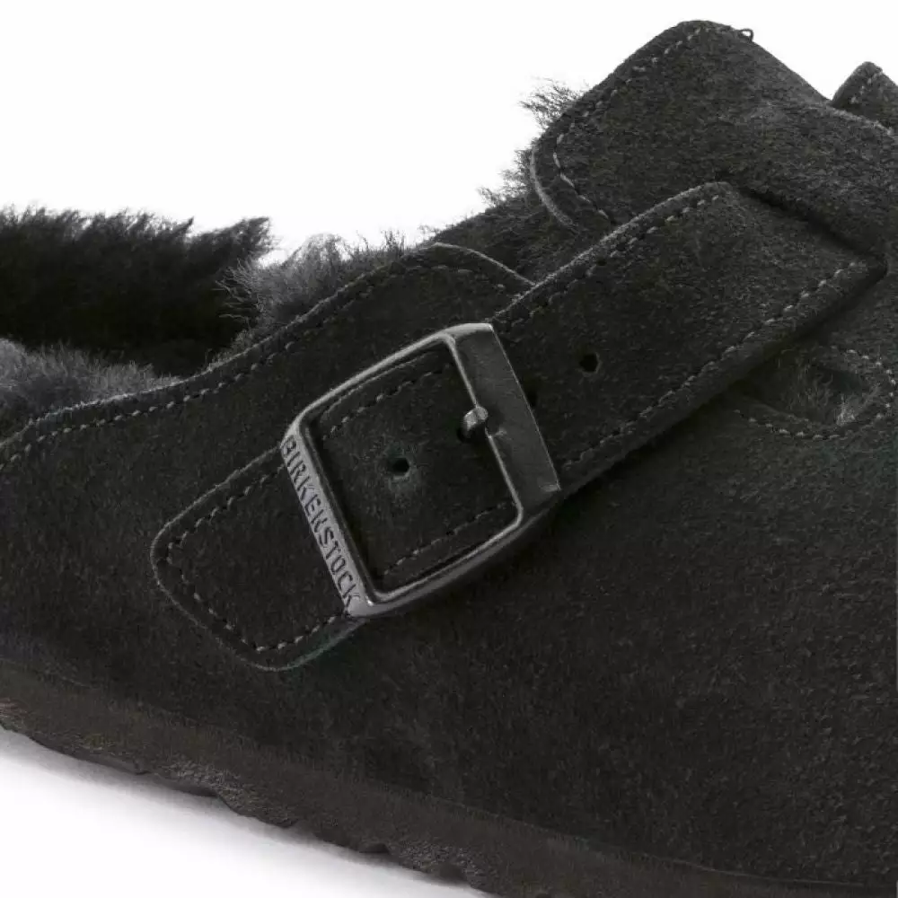 The bolder, the better! This exceptionally Birkenstock Women’s Boston Shearling Suede Leather Black clog, a classic BIRKENSTOCK model, is made of real, very high-quality suede. The natural lambskin footbed and strap lining exudes style and keeps feet warm. The perfect shoe for cozy winter evenings by an open fire!