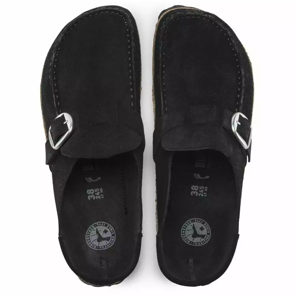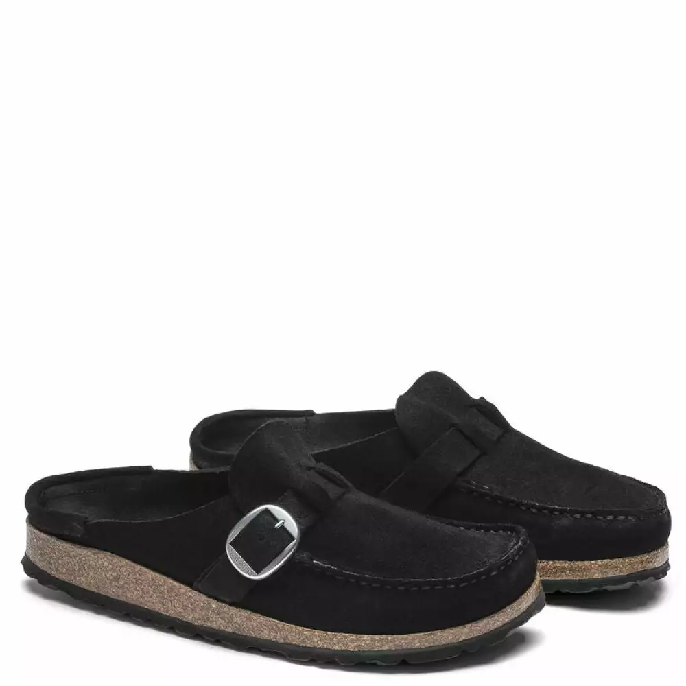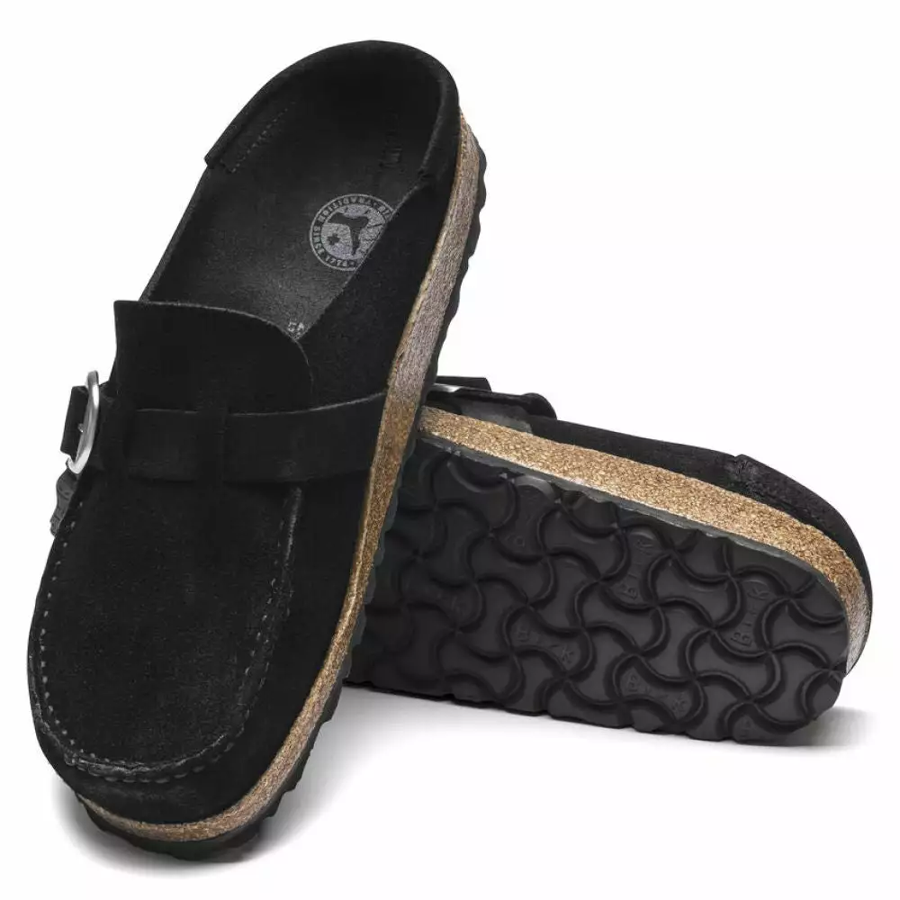 The BIRKENSTOCK Buckley is a semi-open moccasin-style clog that’s instantly recognizable as an authentic BIRKENSTOCK original thanks to its exposed cork footbed. The upper is made from soft suede leather.