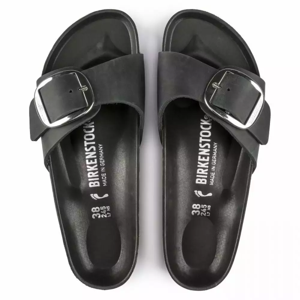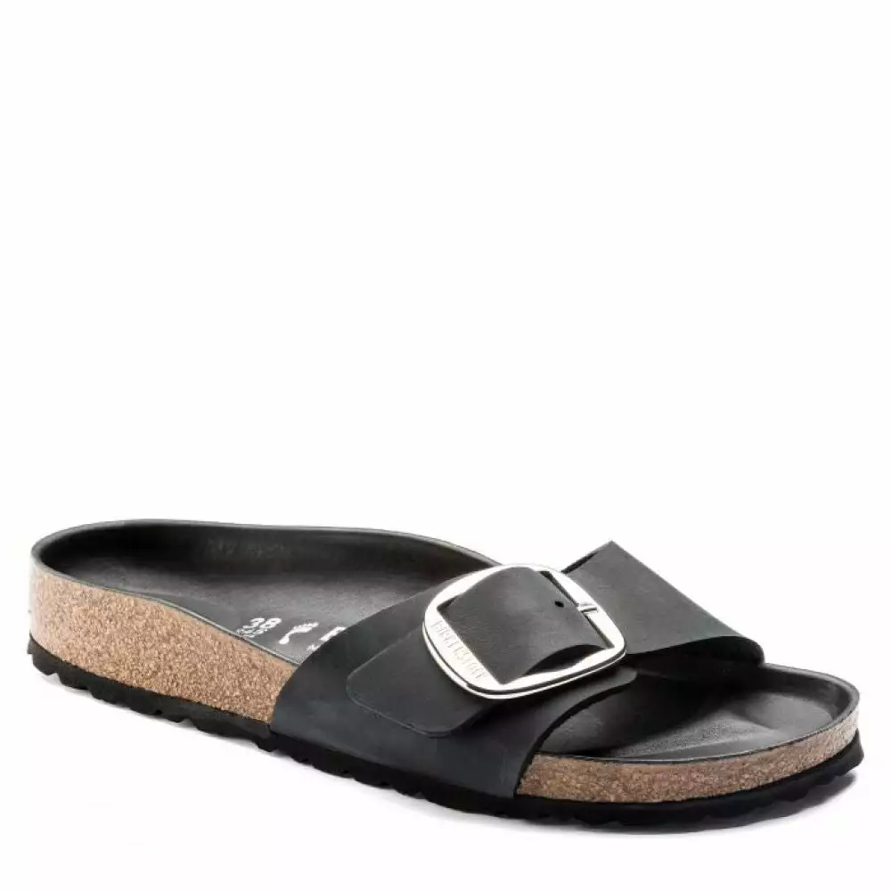 The popular Birkenstock Madrid has been given an update. The Big Buckle version features a large and elegant pin buckle – a bold eye-catcher that gives the classic model a stylish twist. Shown in oiled nubuck leather.