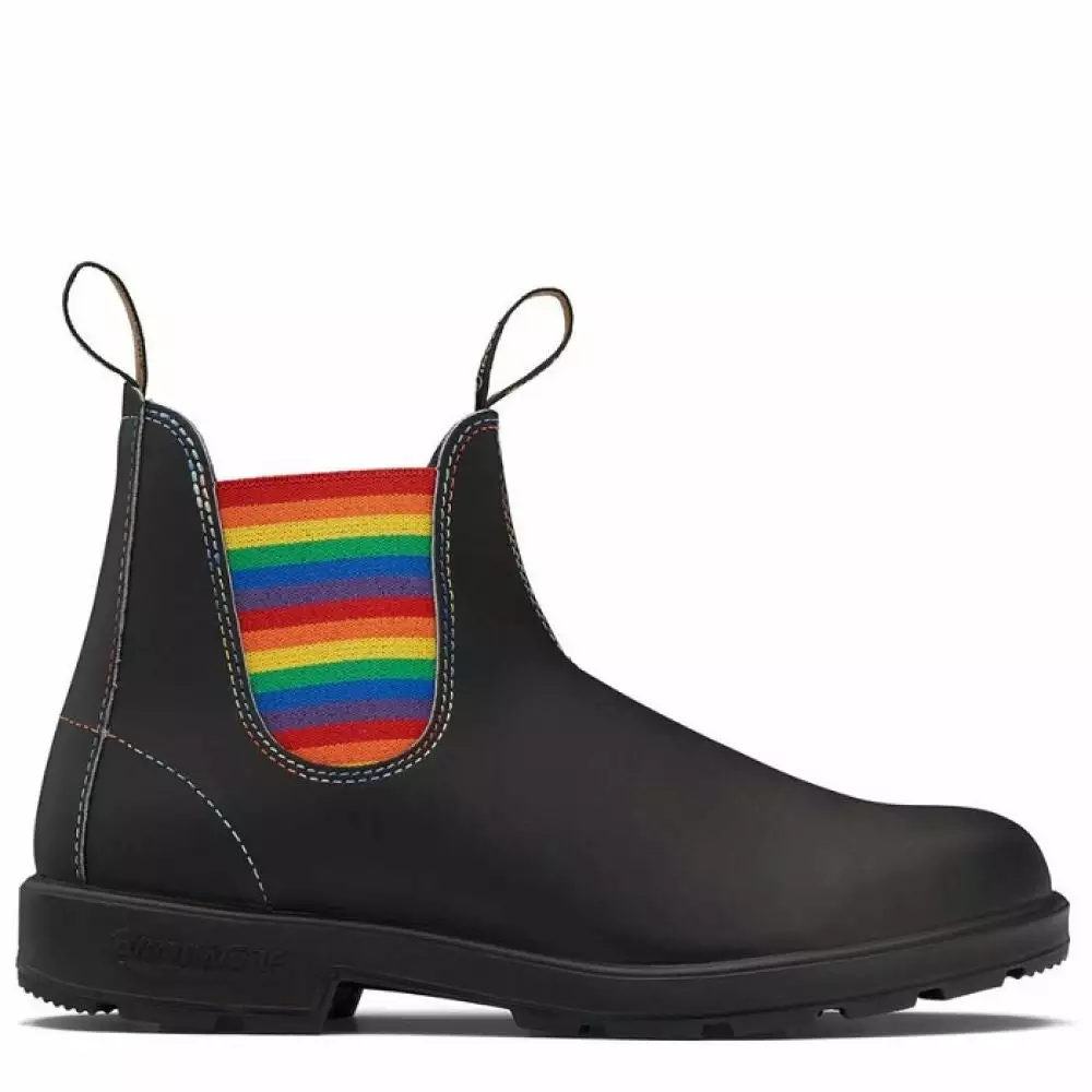 Blundstone Women’s Original 2105 in Black with Rainbow Elastic and Contrast Stitching is for dry feet on a rainy day with a rainbow on the side. That’s comfort, that’s fun. That’s new Blundstone Original Series in Black with Rainbow elastic and contrast stitching. All-season, all-day, all-surface comfort. A rainbow on the side? Well, that’s the silver lining.