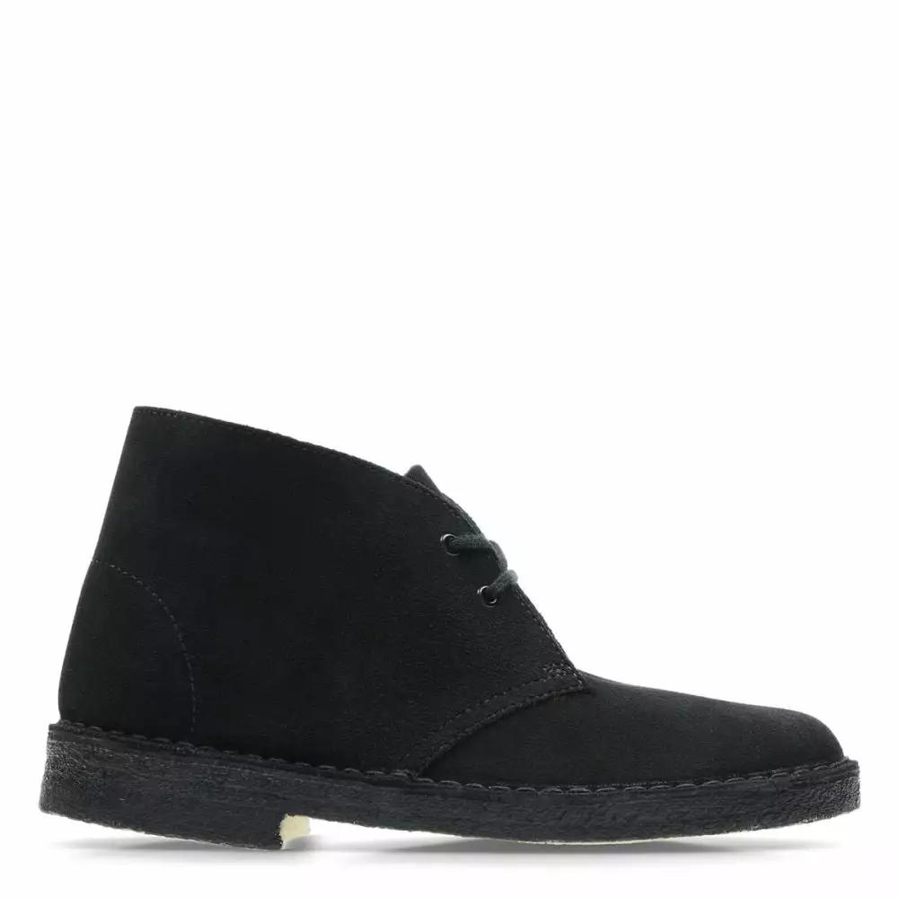 Cultural cachet and design DNA: no shoe is quite like the Clarks Originals Desert Boot. Every design detail today remains true to that first pioneering pair – here, the boot’s crafted, clean lines are enhanced with premium black suede, finished with an unfussy lace fastening. The authentic, sustainably sourced crepe sole completes this distinctive silhouette. Instantly recognizable, forever iconic. A true original.