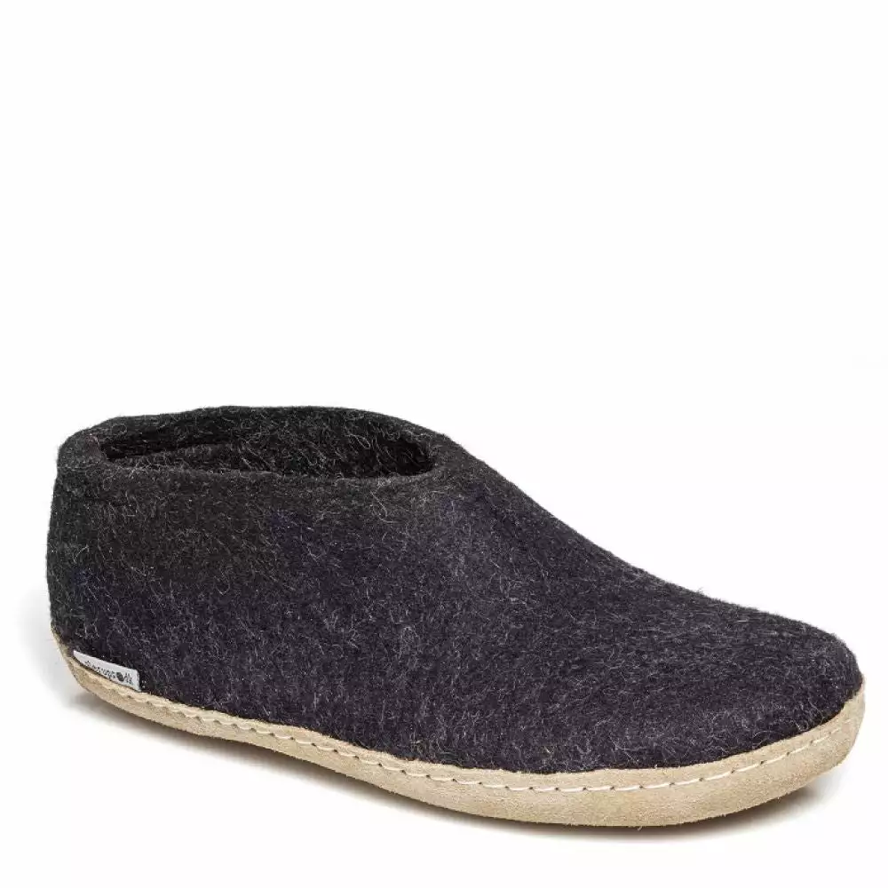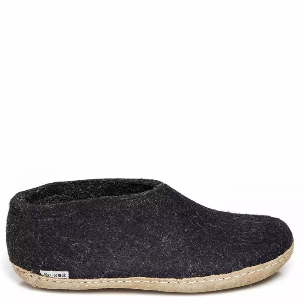 The Glerups Shoe Leather Sole in Charcoal is the perfect indoor footwear for barefoot comfort around the house or chalet, where cold floors are a fact of Canadian life. Get more warmth and the comfort of on-the-foot 100% pure wool shoe.