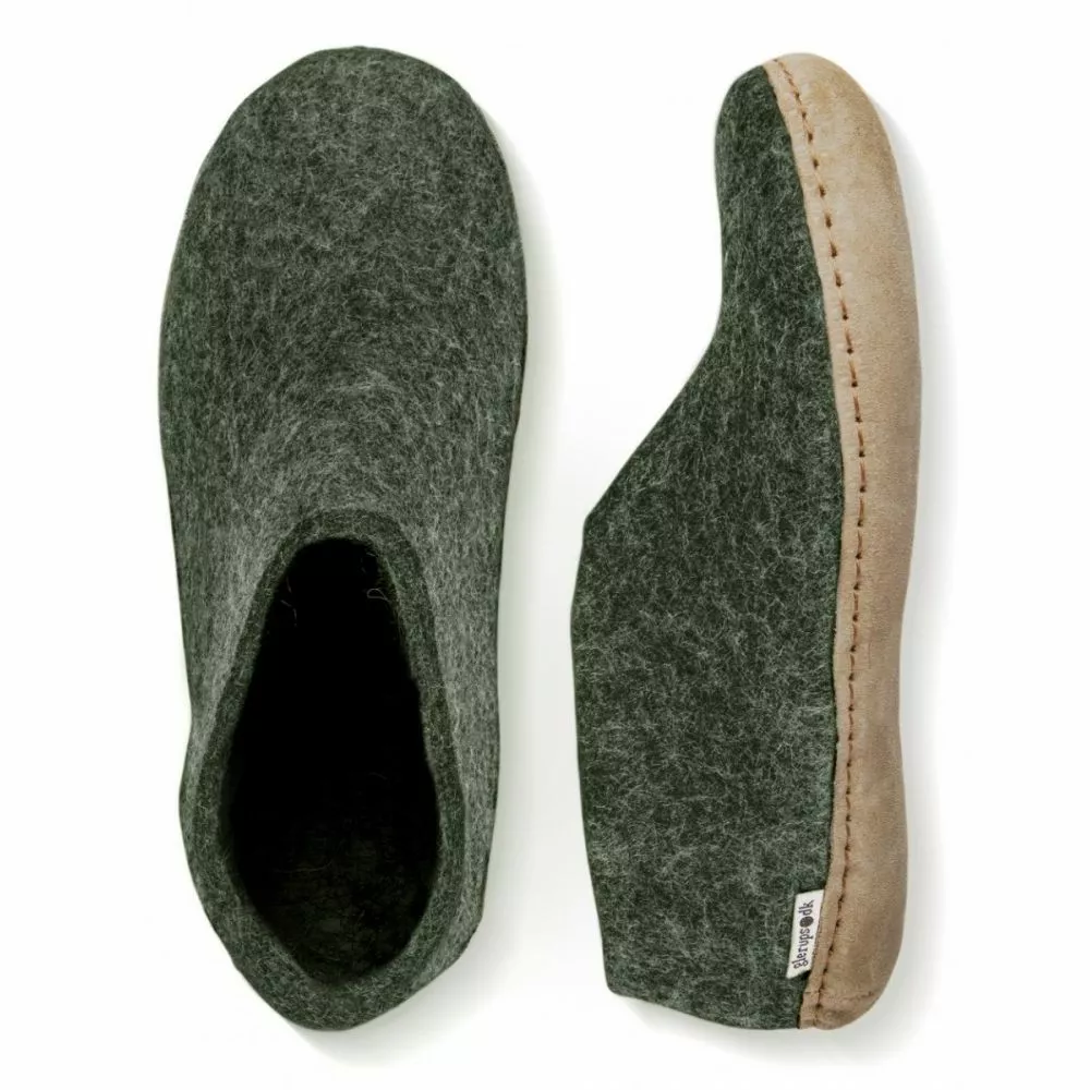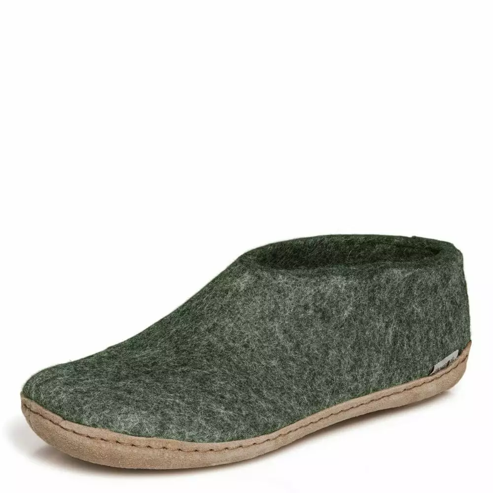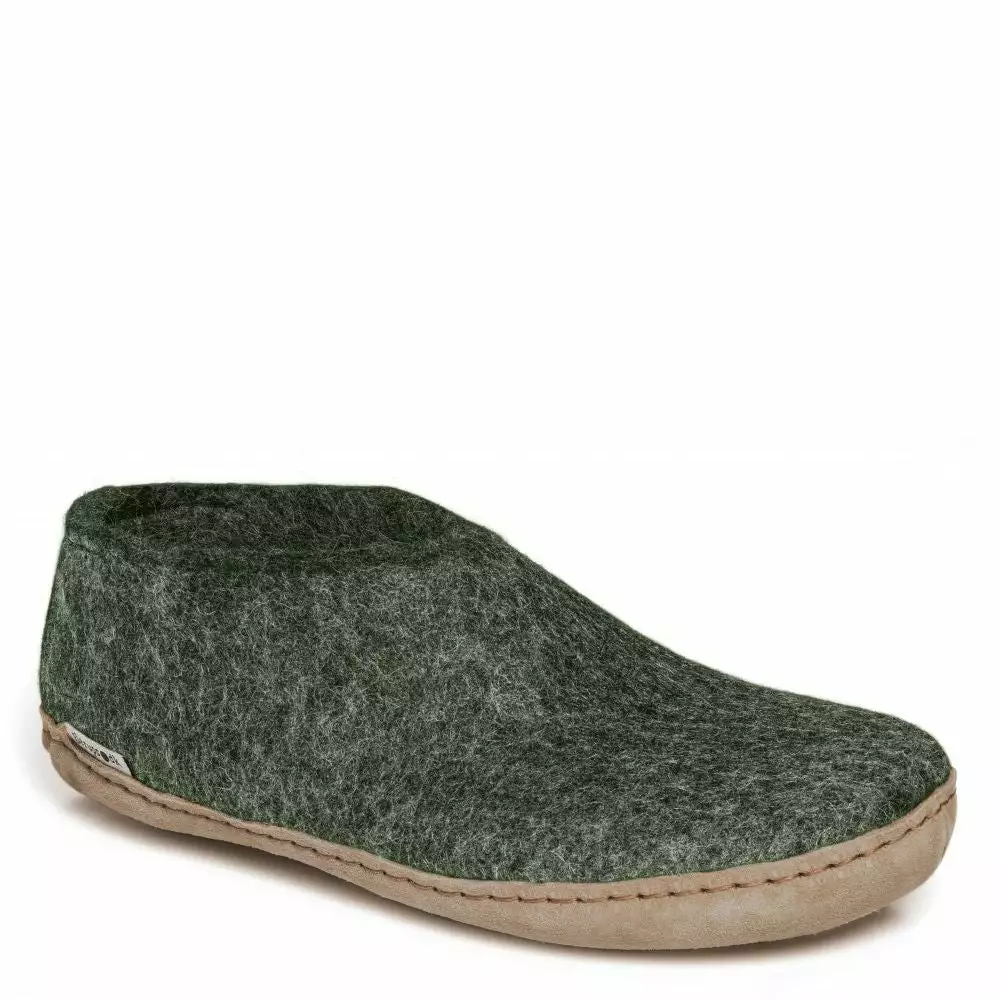 The Glerups Shoe Leather Sole in Forest is the perfect indoor footwear for barefoot comfort around the house or chalet, where cold floors are a fact of Canadian life. Get more warmth and the comfort of on-the-foot 100% pure wool shoe.