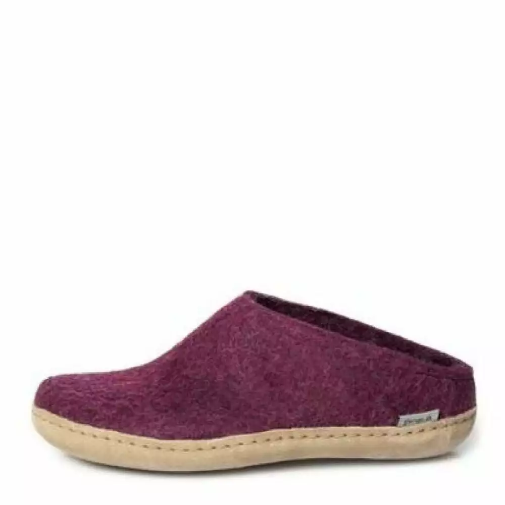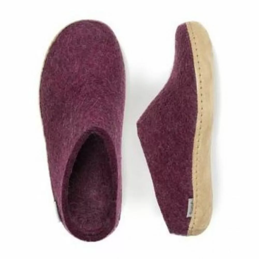 Glerups Open Heel Leather Sole in Cranberry is barefoot comfort for home, cottage, chalet and camp. Toss in a pack for your sleepover or holiday. 100% natural wool, in fun colours. So light and packable you’ll wonder how you traveled without them. 100% pure wool and 100% no itch. Now available in new Cranberry. Natural comfort since 1993.