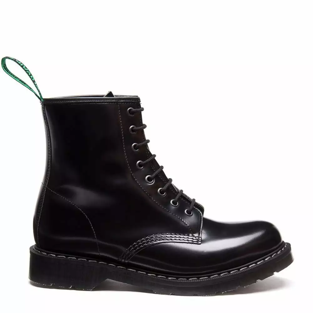 Solovair 8 Eye Derby Boot In Black Hi-Shine