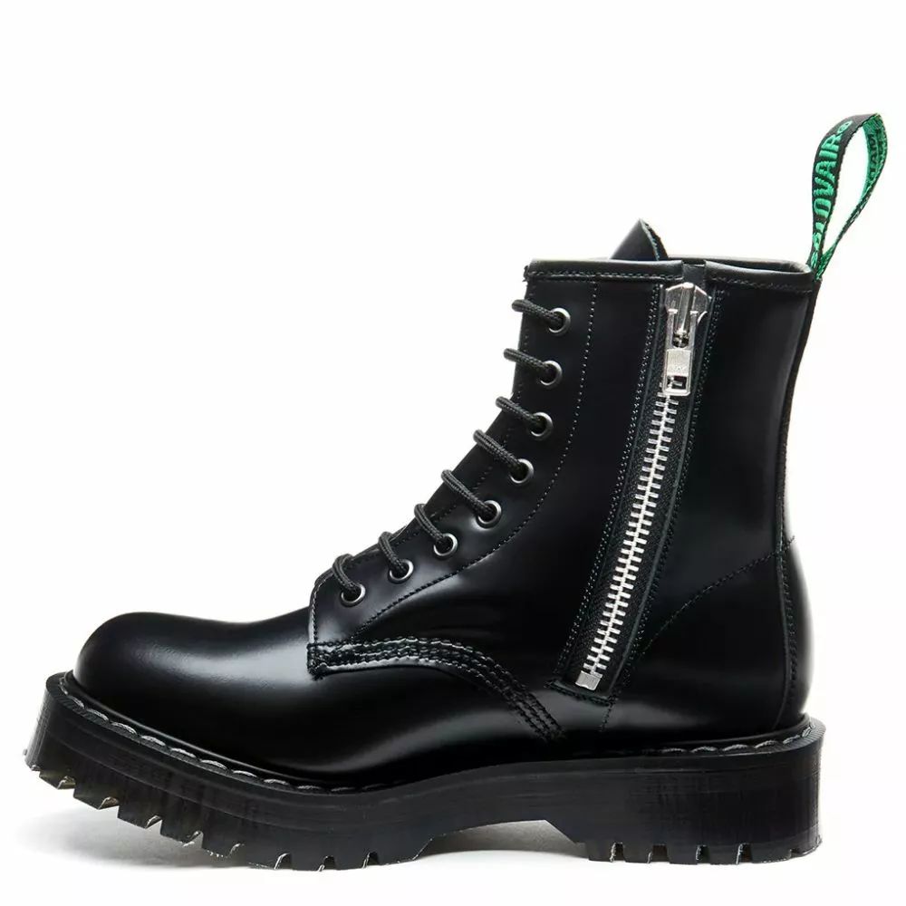 British made, the Solovair 8 Eye Zip Platform Derby Boot in Black Hi-Shine is amongst the best quality footwear in the world. Combining over 130 years of traditional craftsmanship and tooling while using the latest technology and materials.