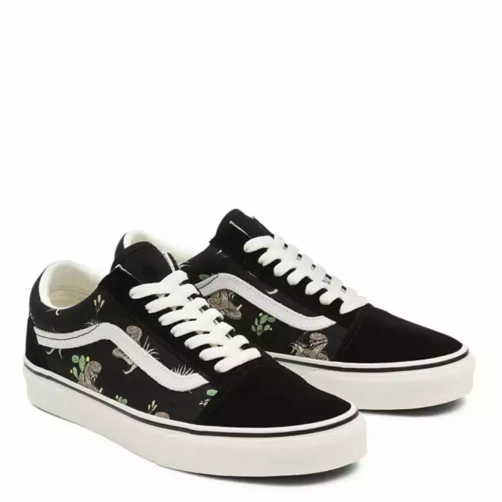 Featuring snake and cactus graphics, the Desert Old Skool pays homage to our heritage while ensuring that this low top, lace-up shoe remains as iconic as ever. It also includes durable suede and textile uppers, re-enforced toe caps, supportive padded collars, and signature rubber waffle outsoles.