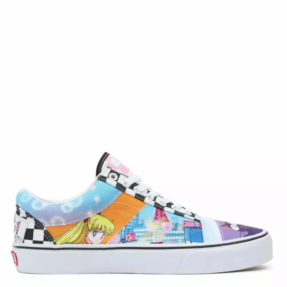 Featuring a patchwork of art and patterns inspired by scenes from Sailor Moon, the Vans X Pretty Guardian Sailor Moon Old Skool Patchwork brings the fun of the iconic show into every step. Constructed with durable canvas uppers, this iconic sidestripe shoe also includes supportive padded collars, re-enforced toe caps, and signature rubber waffle outsoles.